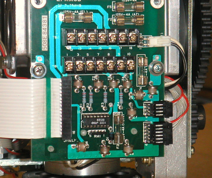 Azimut-Drehbereichs-Erweiterung auf »360° endlos«-Betrieb. Mit dieser mech. Getriebe-Änderung wird das Getriebe-Spiel wesentlich reduziert und auch eine erweiterte Software geliefert: Sie beinhaltet sowohl erweiterte, auf 360° bezogene Winkel-Berechnungen, als auch einen Rundenzähler mit programmierbarer Drehbegrenzung (zur Vermeidung von Kabel-Riss). Diese Begrenzung ist zwischen 1 bis 99 Umdrehungen in jede Laufrichtung einstellbar.