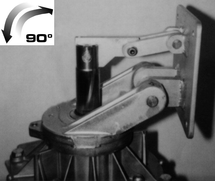 Elevations-Hub-Erweiterung auf »90°«-Betrieb (0 bis 90°). Mit dieser mech. Modifikation wird auch eine erweiterte Software geliefert: Sie beinhaltet berichtigte, auf 90° bezogene Winkel-Berechnungen und (wegen größerer Wiederholtoleranz) eine tabellarische Winkelkorrektur mit 50 Korrektur-Punkten! (ACHTUNG: Beschränkung auf max. 1,8 m Antennen-Ø).