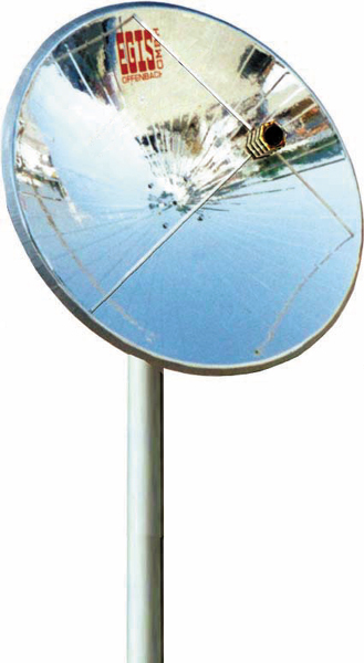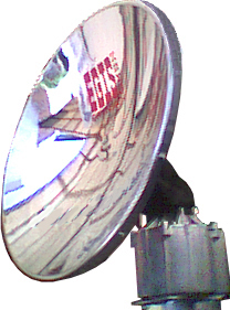 Parabolischer Kon- zentrator (Versuchs- Aufbau) nachgeführt mit SolarTracker von EGIS. |